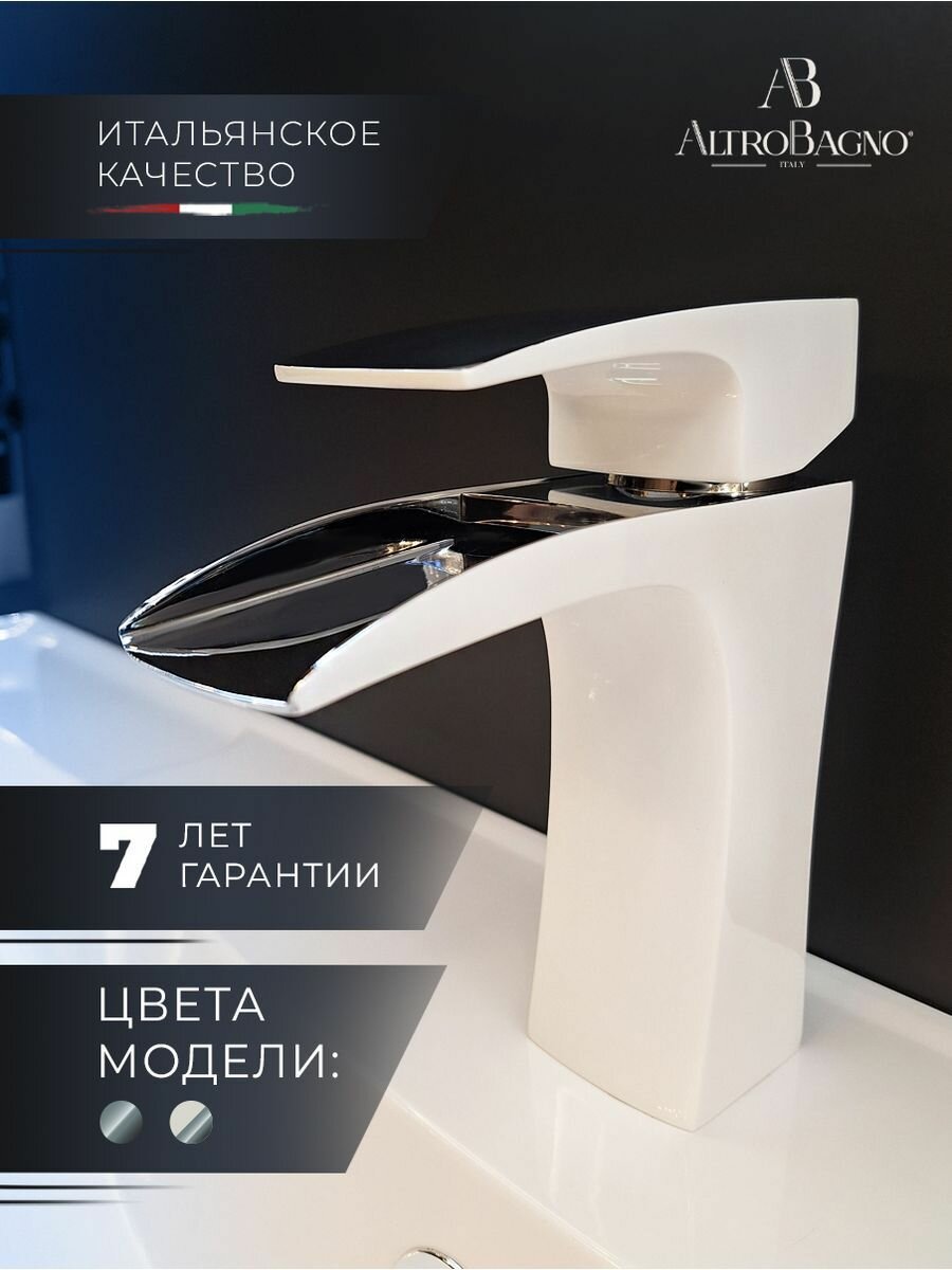 AltroBagno Смеситель для раковины в ванную с водопадным изливом, белый / хром информация: