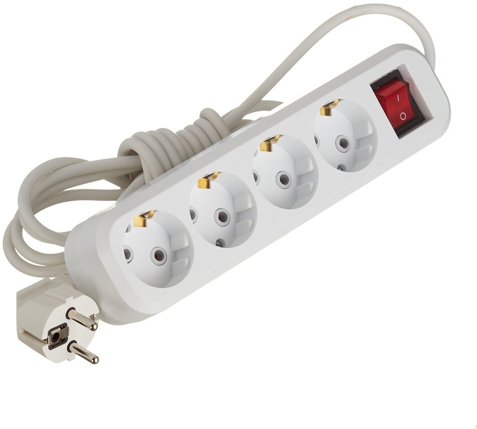 4-местный удлинитель Stekker с заземлением с выключателем, 3x0,75мм2, 3м, 10А, У10а-003, белый HM03- .