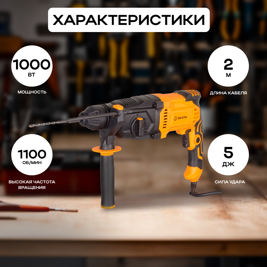 Перфоратор сетевой Вихрь П-5А-1000, SDS-Plus, 1000Вт, 4900уд/мин, с кейсом информация:
