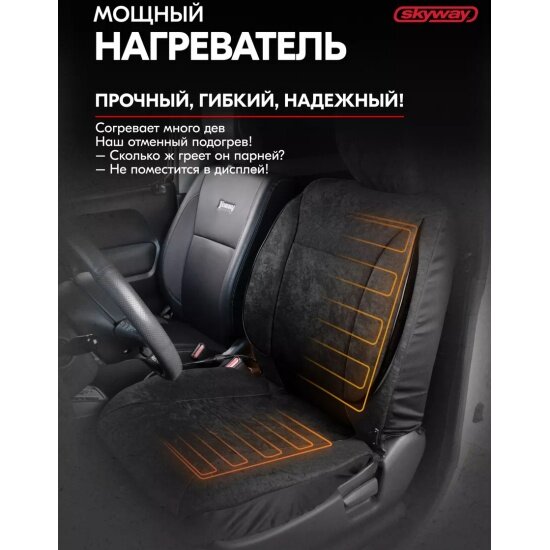 Отзывы на Чехол сиденья с подогревом вельвет ТМ Skyway SKYWAY с терморегулятором (2 режима) Черный с боковой поддержкой спины 12V 116х56см 2,5А-3А (2 шнура: справа, слева)