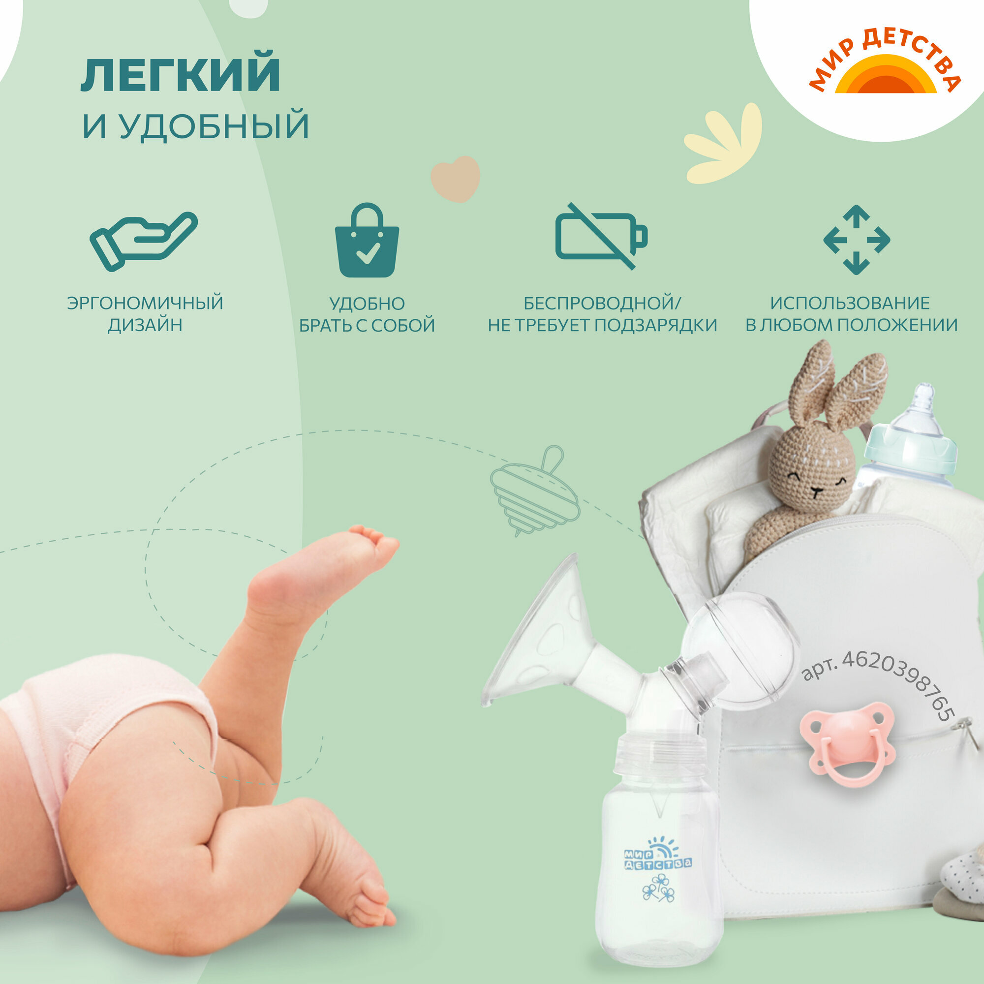 Молокоотсос ручной Мир Детства с бутылочкой 250 мл для сцеживания молока и силиконовой накладкой информация: