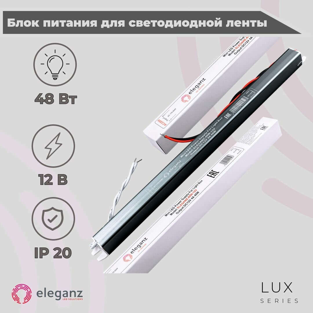 Блок питания для светодиодных лент 12v (карандаш) "Eleganz 48w", трансформатор для ленты, IP20 информация: