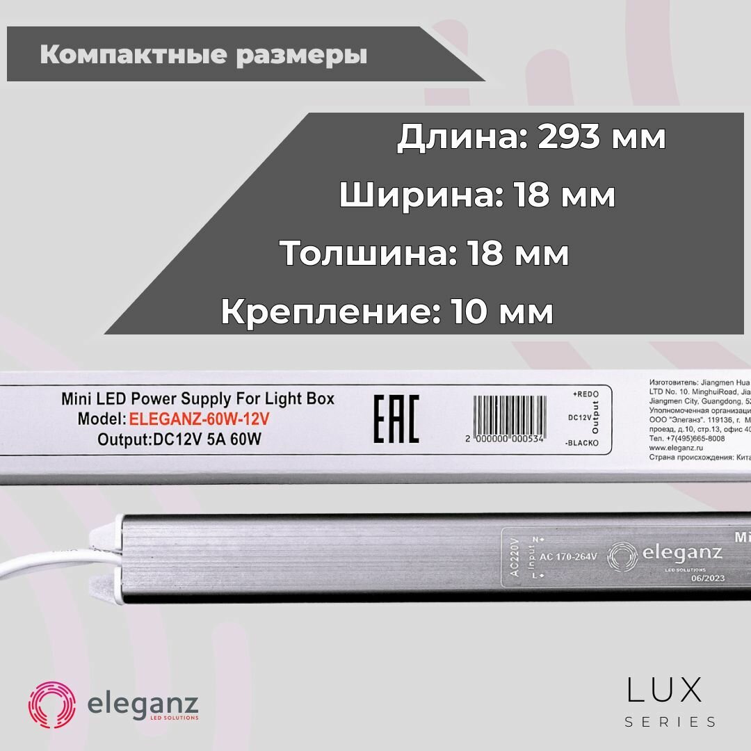 Блок питания для светодиодных лент 12v (карандаш) "Eleganz 60w", трансформатор для ленты, IP20 информация: