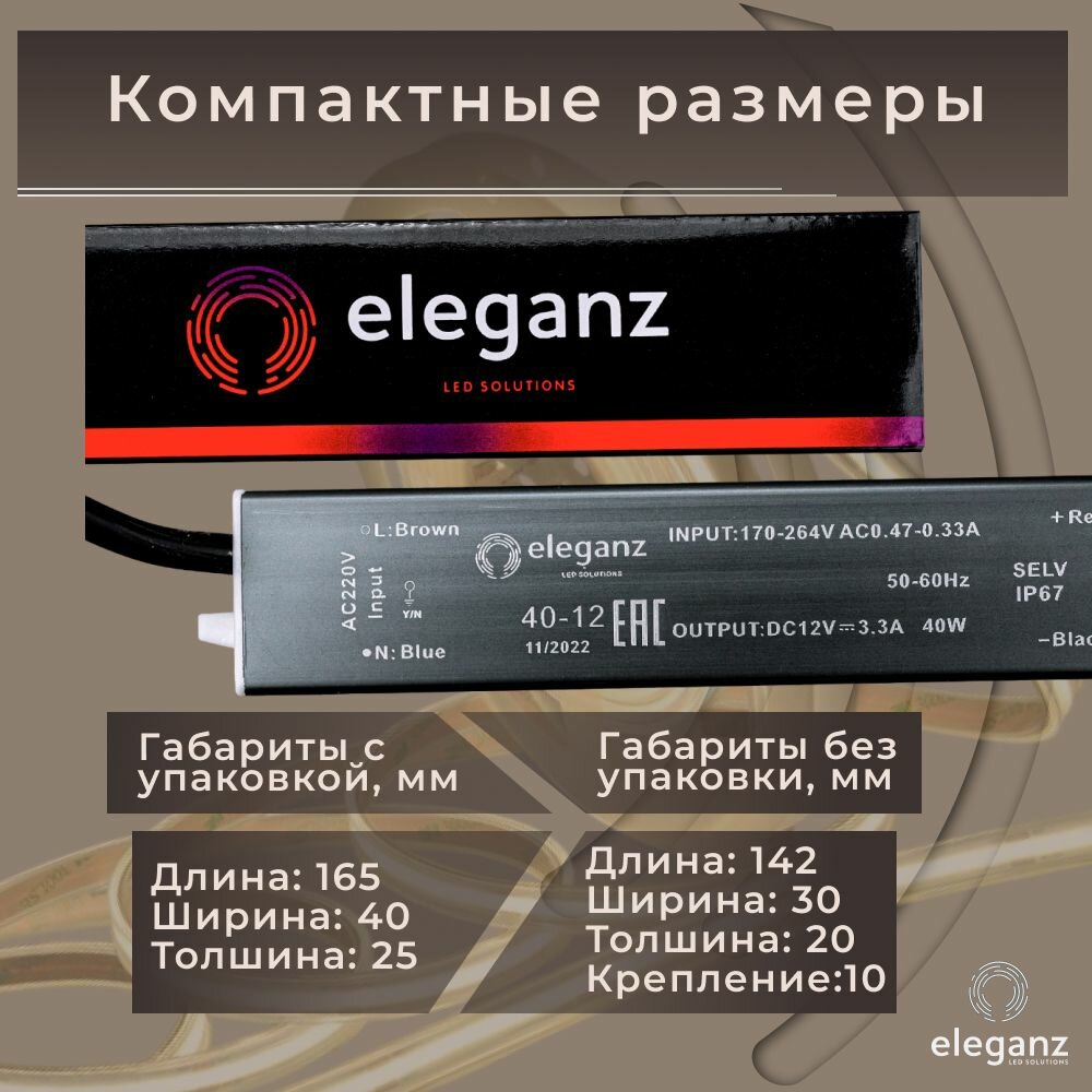 Отзывы на Герметичный блок питания для светодиодных лент 12v (металлический корпус) "Eleganz 40w", трансформатор для ленты, IP67