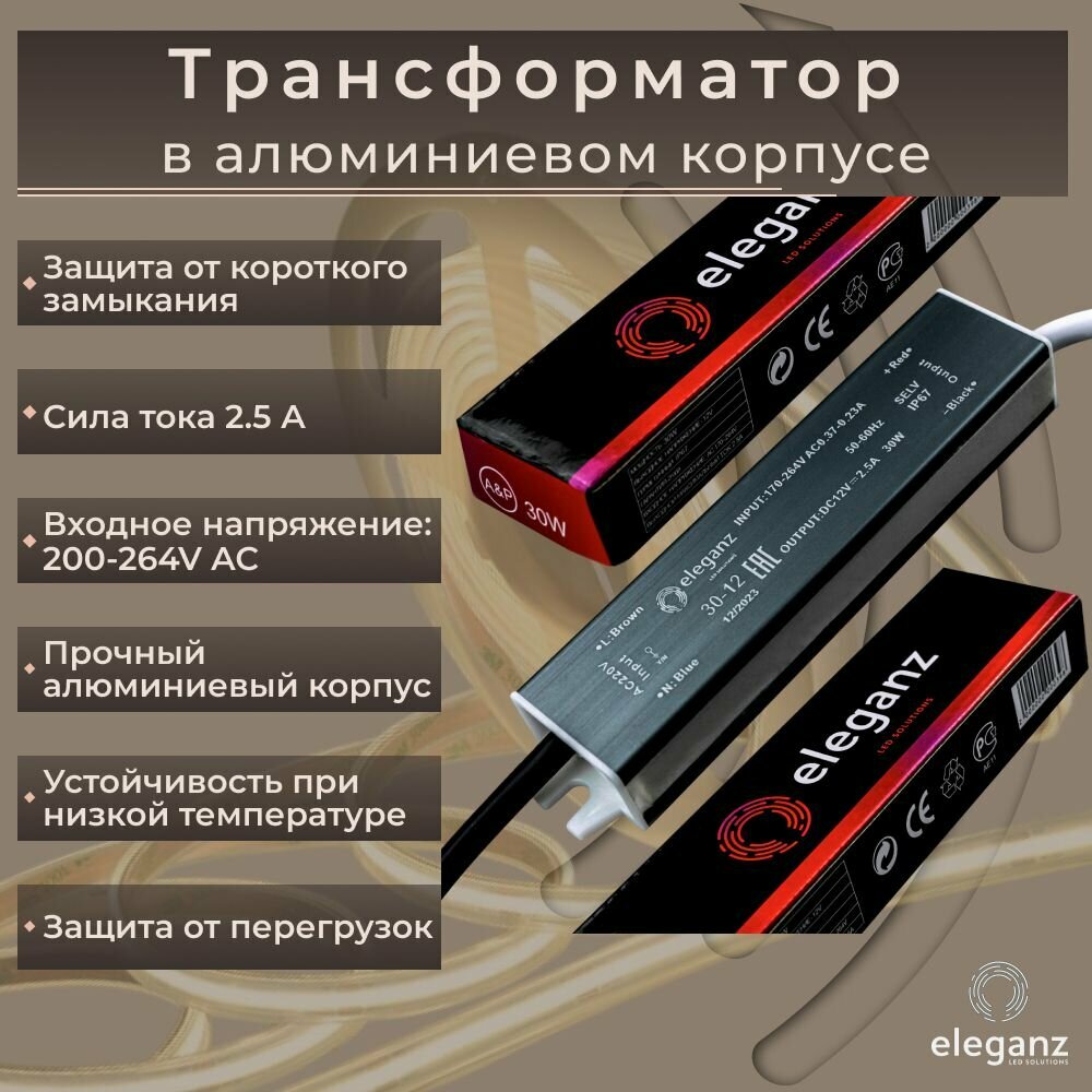 Отзывы на Герметичный блок питания для светодиодных лент 12v (металлический корпус) "Eleganz 30w", трансформатор для ленты, IP67