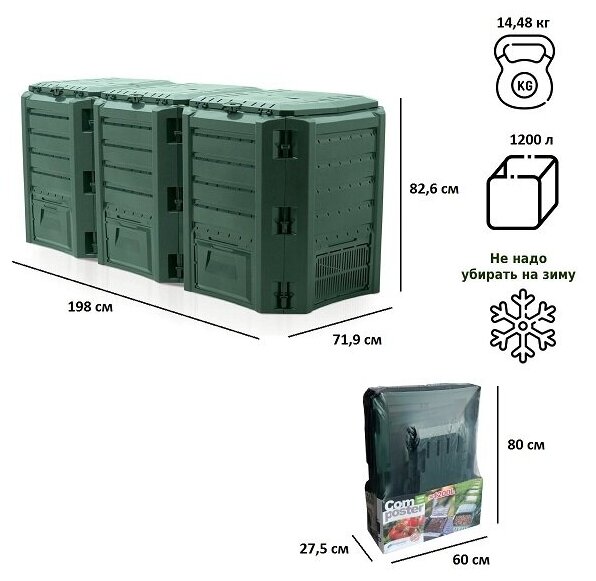 Компостер Prosperplast Module 1200 л зеленый, арт. IKSM1200Z-G851 информация: