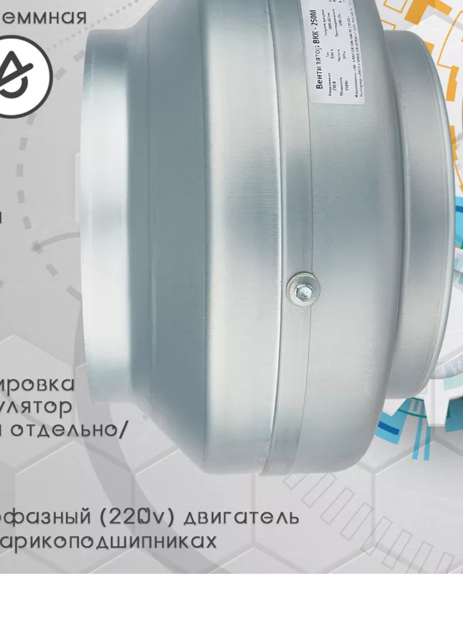 Вентилятор канальный ВКК 250М, производительность 1200 м. куб/час 8 000 ₽