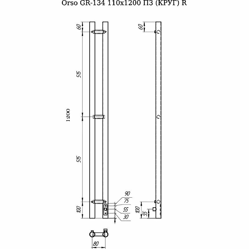 Полотенцесушитель электрический Orso GR-134 110х1200 П3 (круг) black mat R 10 351 ₽