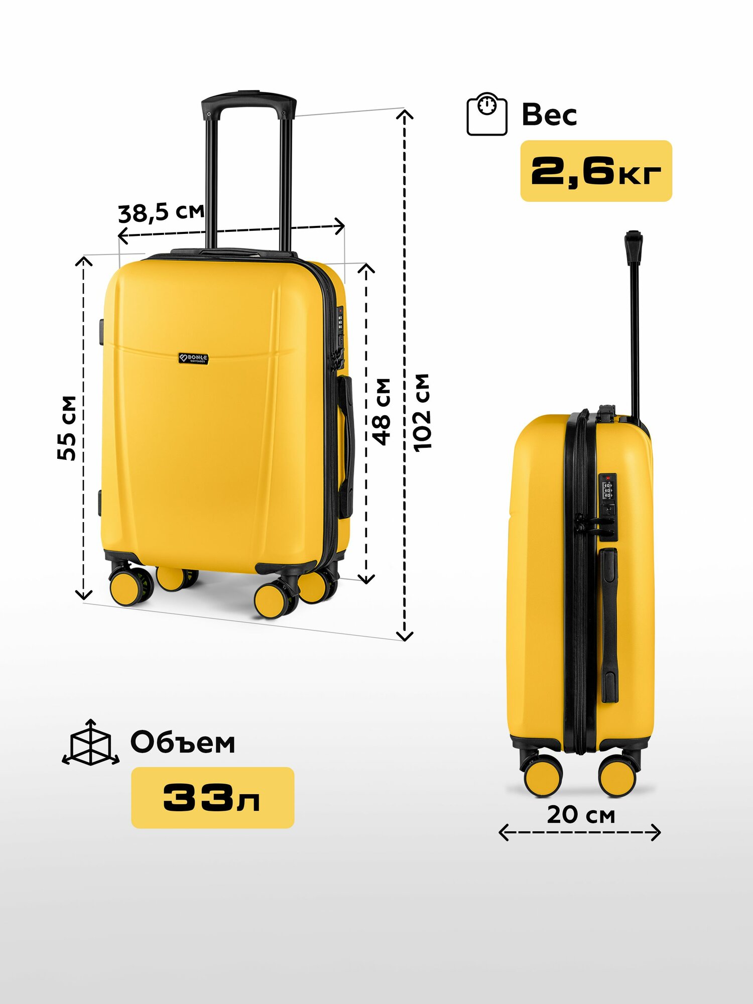 Чемодан на колесах ручная кладь желтый Bonle, премиум ABS-пластик, размер S, 55 см, 33 л, дорожный, маленький, детский 7 350 ₽