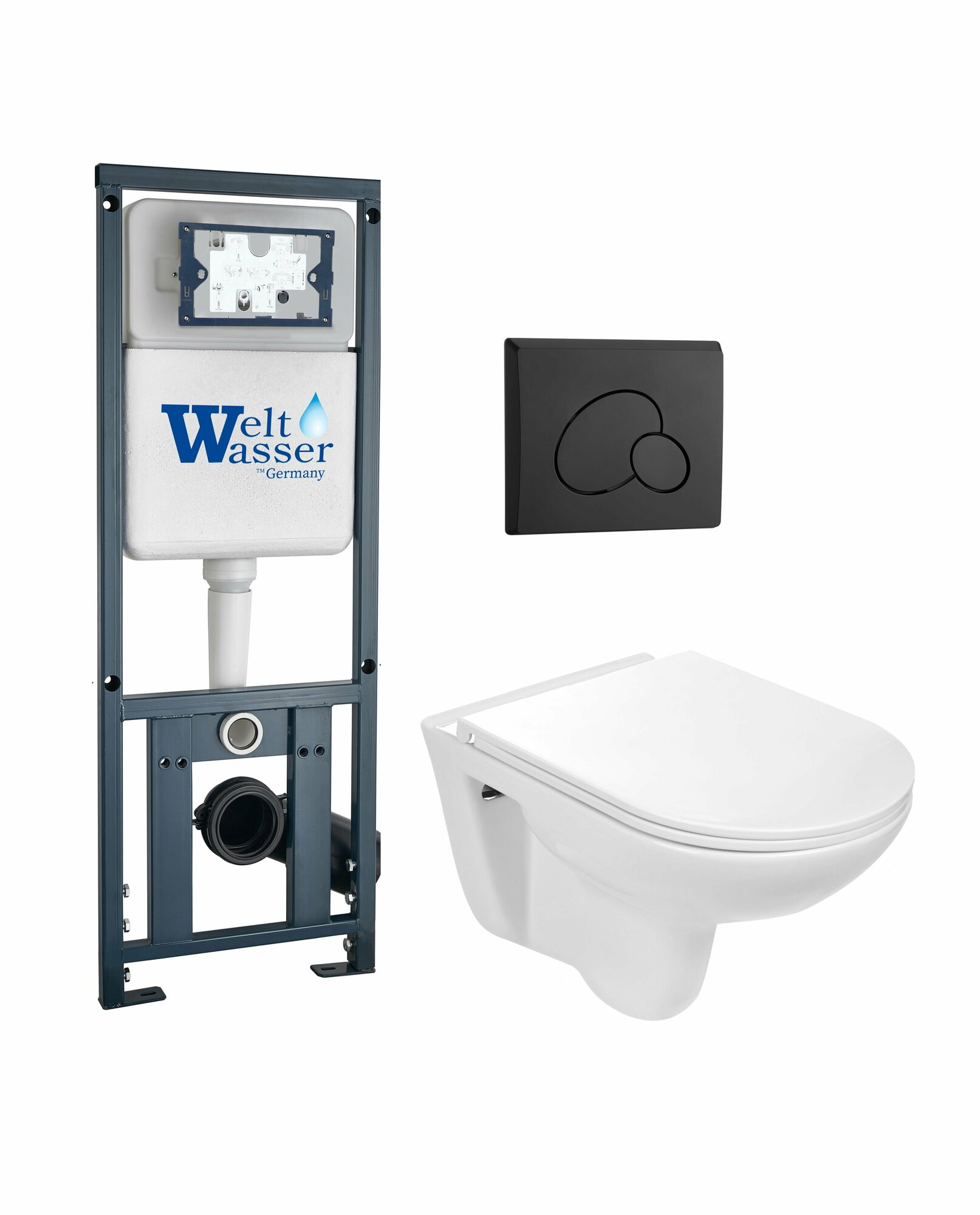 10 цен на Инсталляция с унитазом WeltWasser MARBERG410, унитаз BAARBACH004GL-WT белый глянец, клавиша MAR410RDMT-BL матовый черный,
