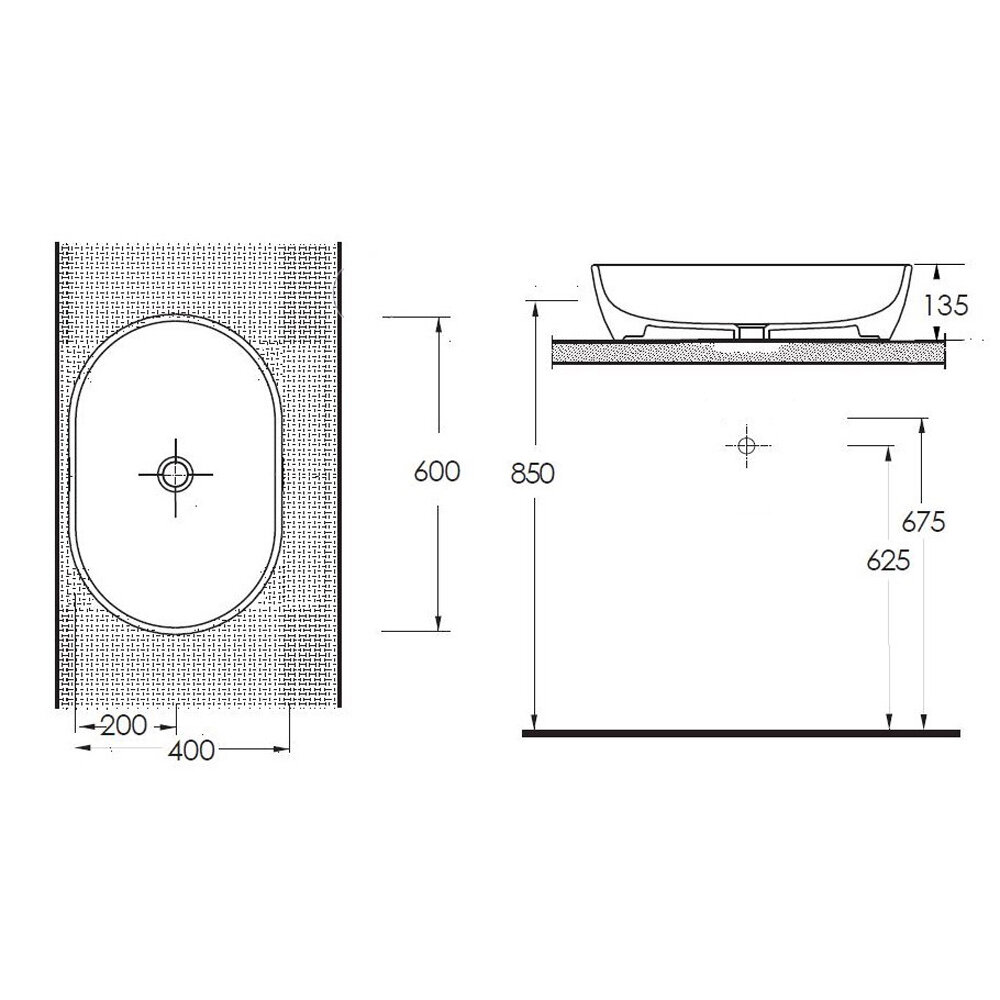 Раковина накладная из натурального камня Black Swan, Espera (59x31)