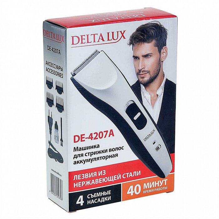 Машинка для стрижки DELTA LUX DE-4207A, белый с чёрным , 2 Вт. информация: