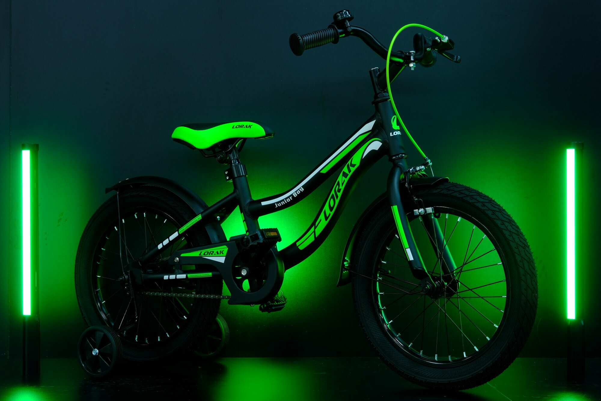 Велосипед детский LORAK JUNIOR 16 Boy Матовый Чёрный/Зелёный под рост 104-122 см информация: