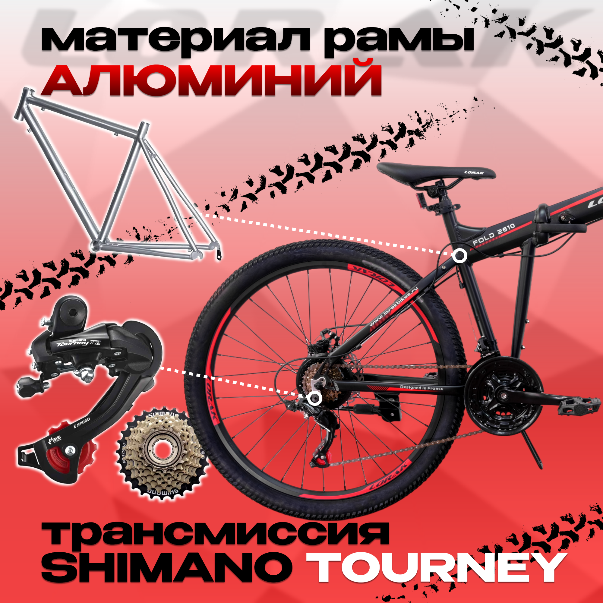 Велосипед Lorak Fold 2610 18", черный/красный, унисекс, складной, 165 - 180см информация:
