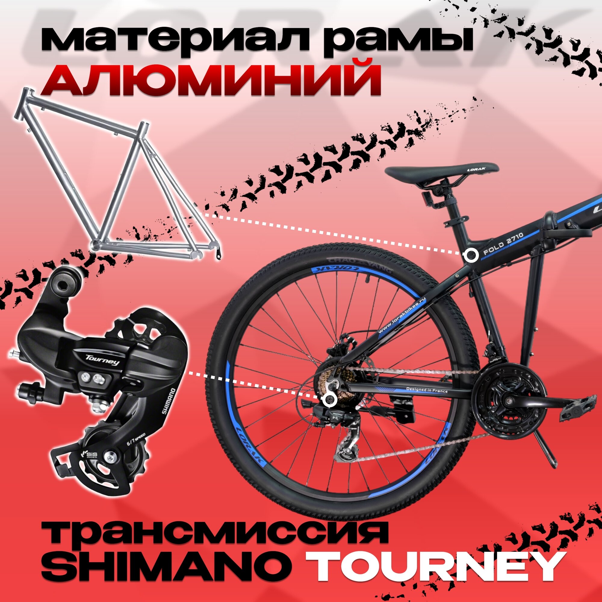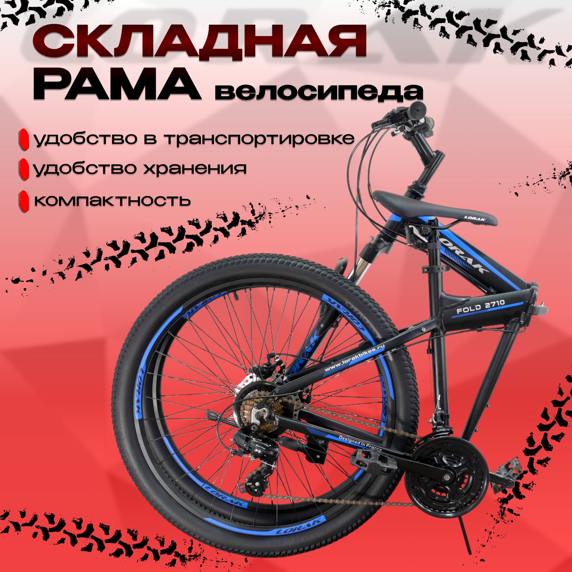 Велосипед Lorak Fold 2710 синий/чёрный, 27 скоростей, рама 18 дюймов, рост 165 — 180см информация: