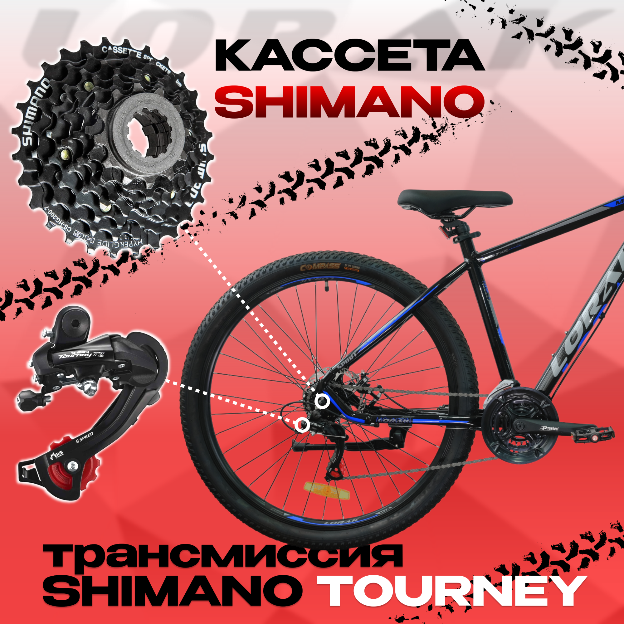 10 цен на Велосипед горный LORAK M-07 Prom 18, р Чёрный/Синий глянец, под рост 165-180 см, 21 скорость