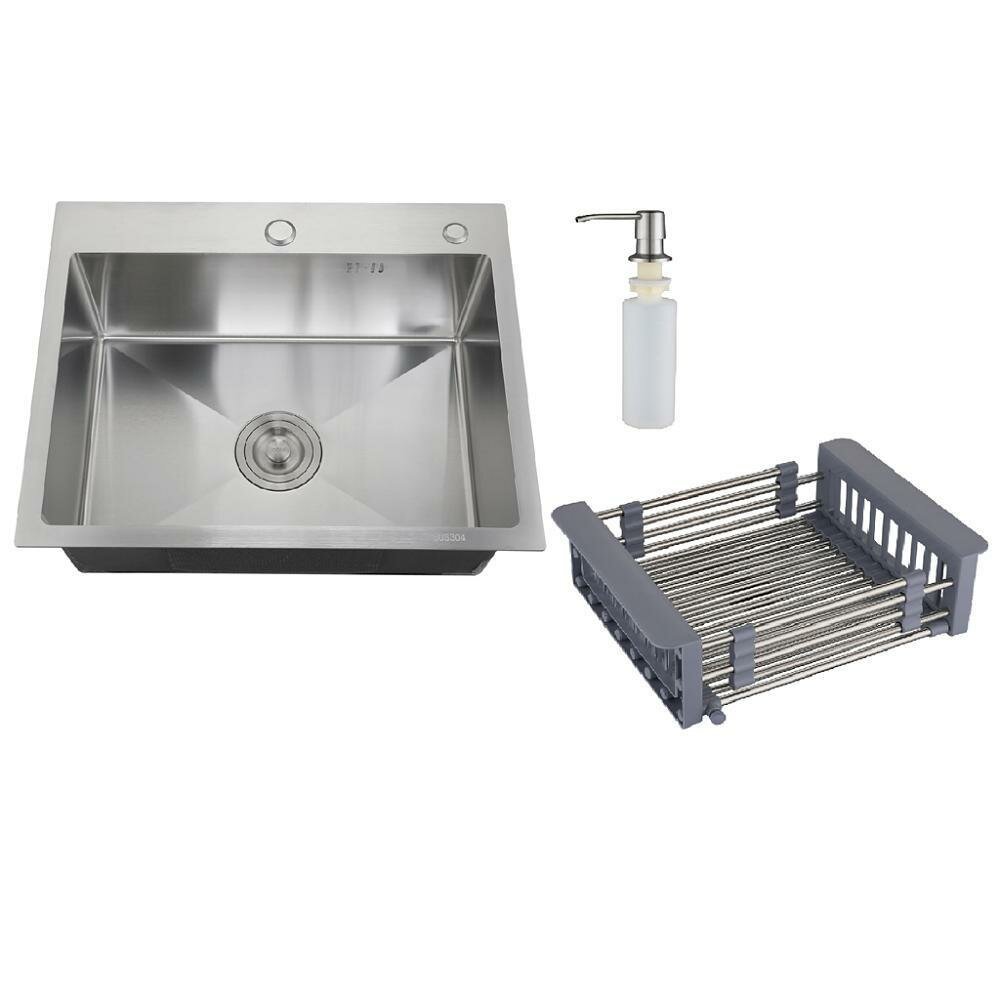 Кухонная мойка из нержавеющей стали, РМС MR-5050, набор для раковины на кухню, дозатор, корзина раздвижная для сушки, сифон 10 410 ₽
