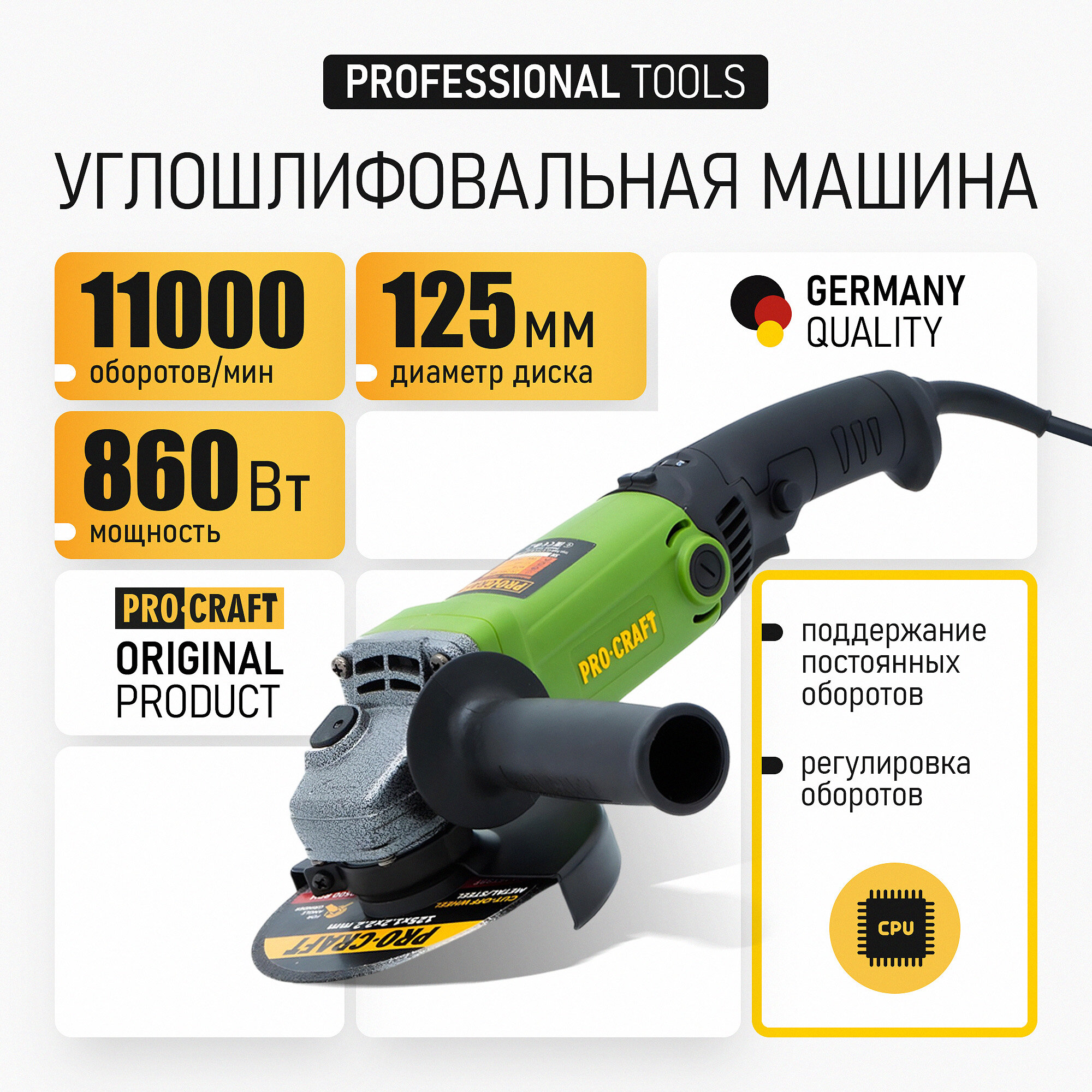 Отзывы на Болгарка 125 мм 860 Вт электрическая сетевая PROCRAFT PW1200ES ушм с поддержанием постоянных оборотов под нагрузкой