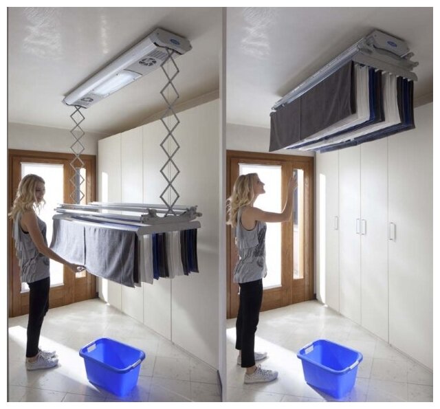 Отзывы на Навесная многофункциональная потолочная регулируемая по высоте электросушилка для белья - Foxydry Air 150 с функцией вентиляции подсветкой и пультом ДУ производства Италия