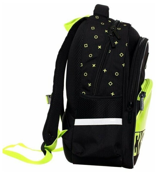 Рюкзак школьный 41 х 29 х 16 см, эргономичная спинка, Hatber Easy, CYBER SPORT, салатовый/чёрный NRk_76079