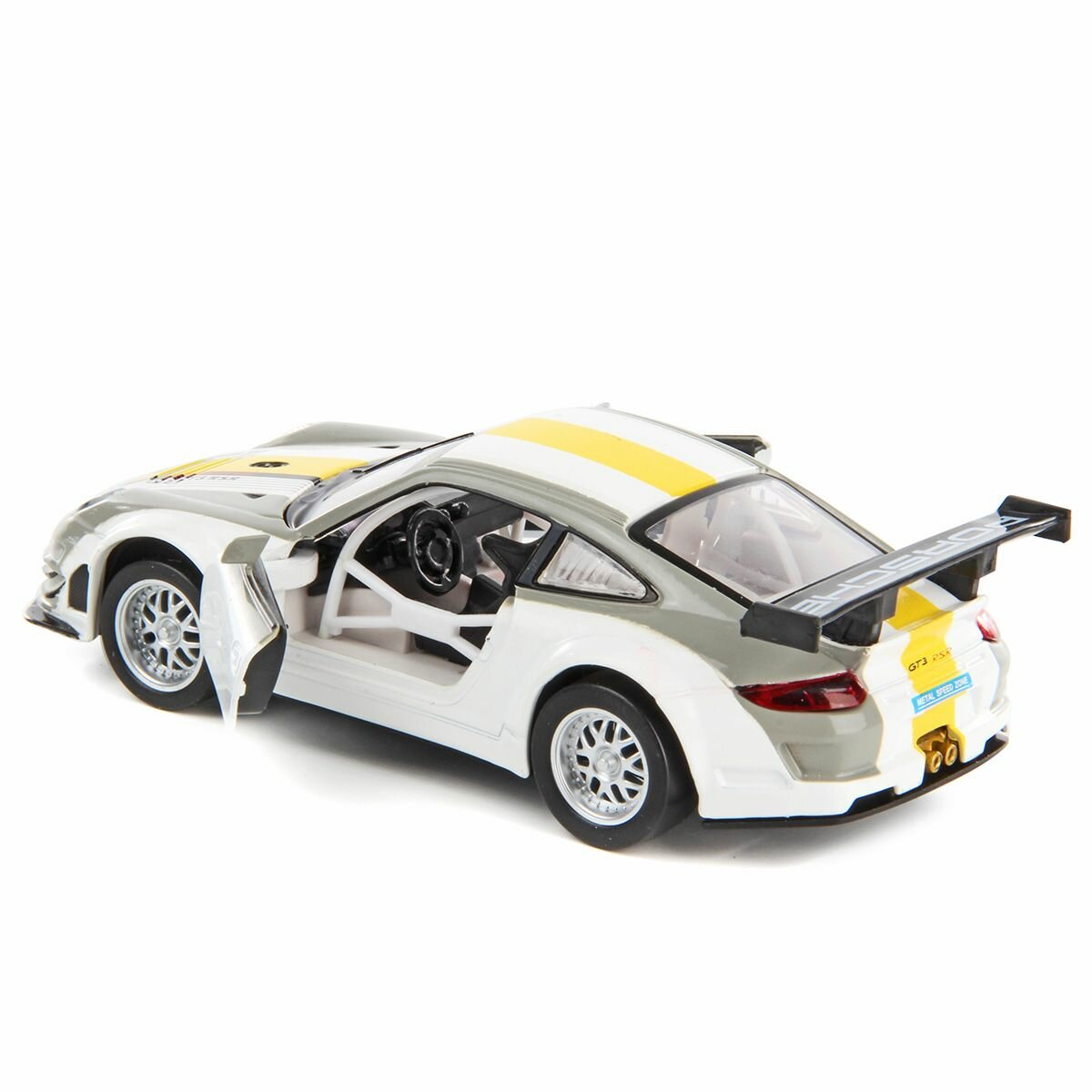 Машина металлическая Porsche 911 GT3 RSR 1:32, звук/свет, двери открываются, инерционная информация: