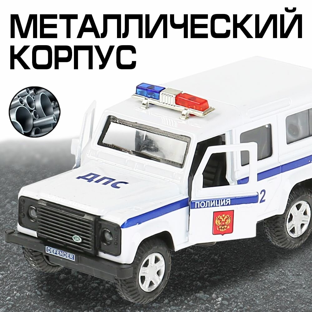 Машинка детская Полиция Land Rover Range Rover Defender 12 см, Технопарк, белая, открываются двери и багажник информация: