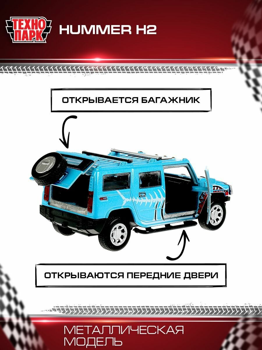 Машинка детская Hummer H2 Хищники 12 см, Технопарк, голубой, открываются двери и багажник