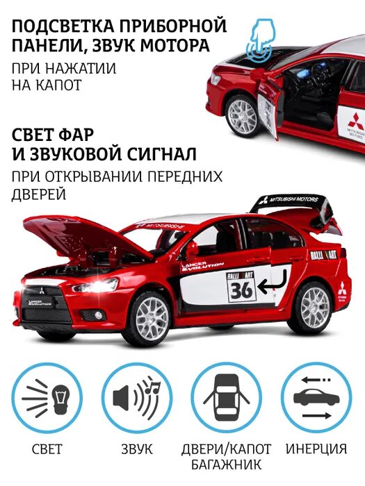 Машинка металлическая инерционная ТМ Автопанорама, Mitsubishi Lancer Evolution, открываются двери/капот/багажник, М1:32, свет/звук, красный, JB1251331 869 ₽