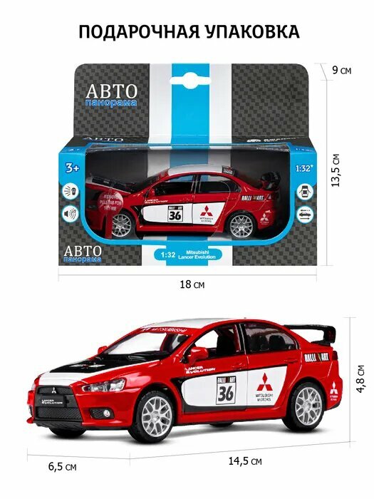 Легковой автомобиль Автопанорама Mitsubishi Lancer Evolution 1:32, 14.5 см