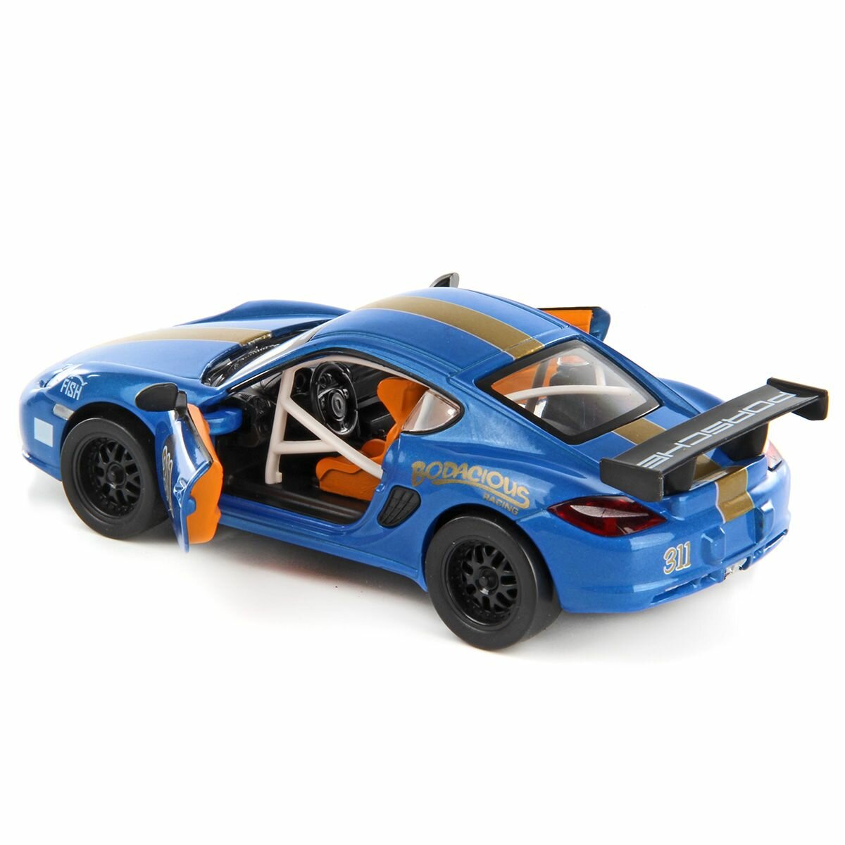 Машина металлическая Porsche Cayman (987) Race Version 1:32, звук/свет, двери открываются, инерционная информация: