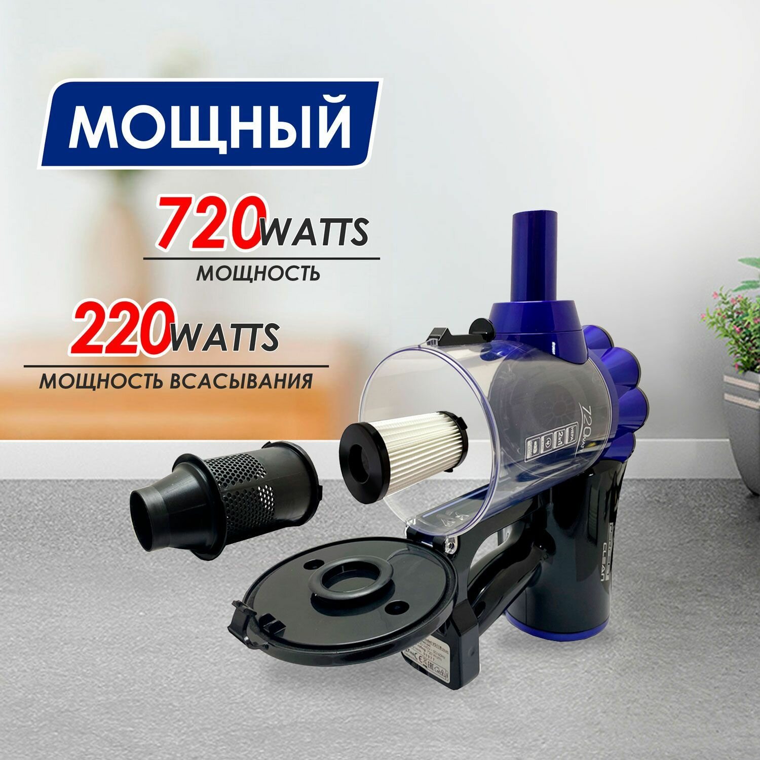 Пылесос вертикальный Ginzzu VS118 blue 720Вт с дополнительной щеткой для труднодоступных мест информация: