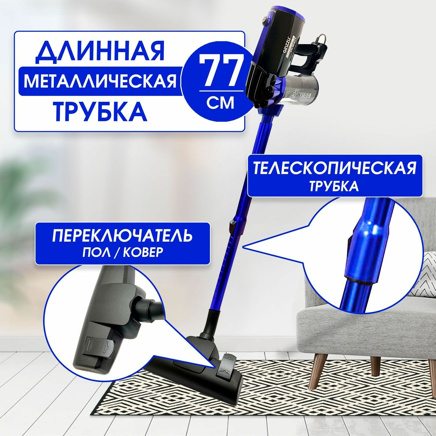 Пылесос GiNZZU VS118 вертикальный черно/синий с доп щеткой для труднодоступных мест