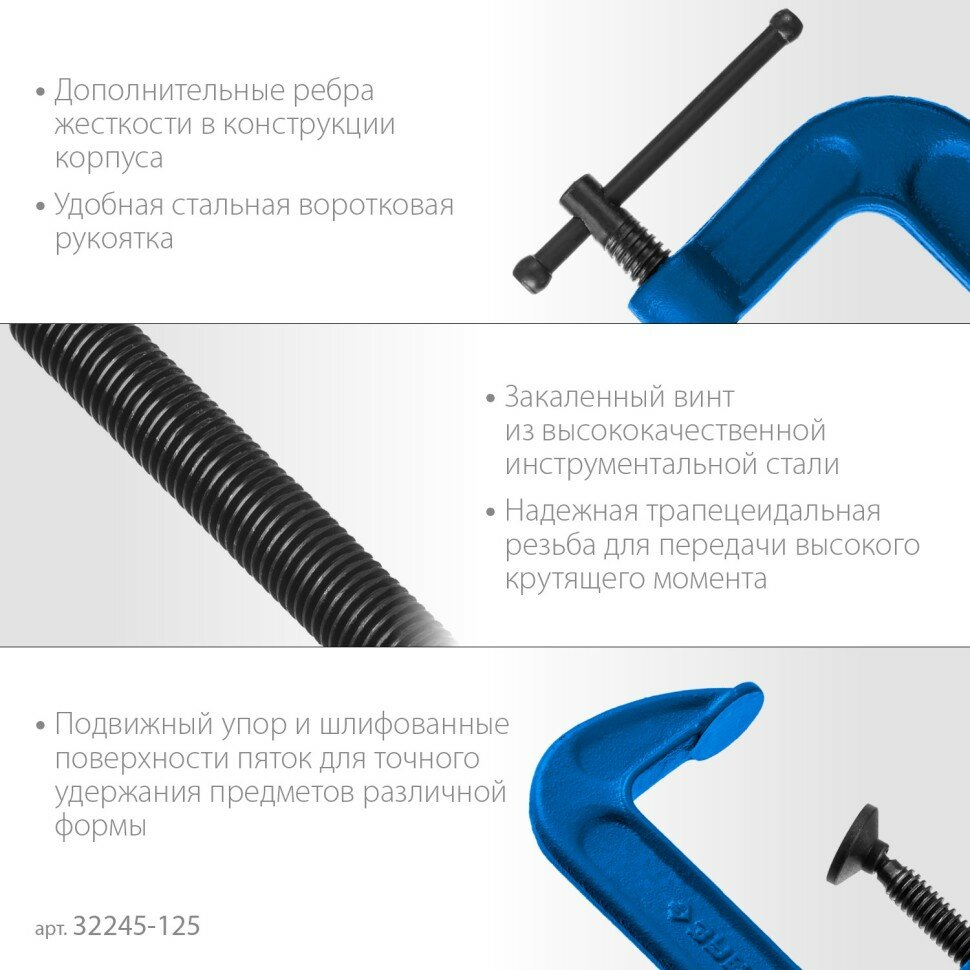 ЗУБР ПСС-130 струбцина тип G 125 мм, ЗУБР ( 32245-125_z02 ) информация: