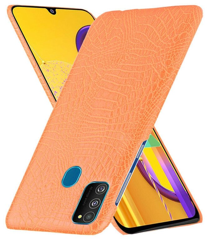 Чехол-накладка Mypads на Samsung Galaxy M30s / Samsung Galaxy M21 SM-M215 (2020) элегантный тонкий на пластиковой основе с дизайном под кожу крокодила оранжевый