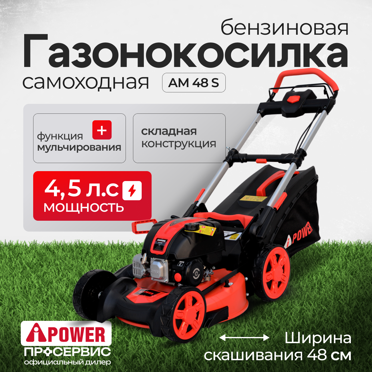 Отзывы на Газонокосилка бензиновая самоходная A-iPower AM48S (4,5 л. с, травосборник 70 л, ширина скашивания 48 см, высота 30-80 мм, 32 кг)