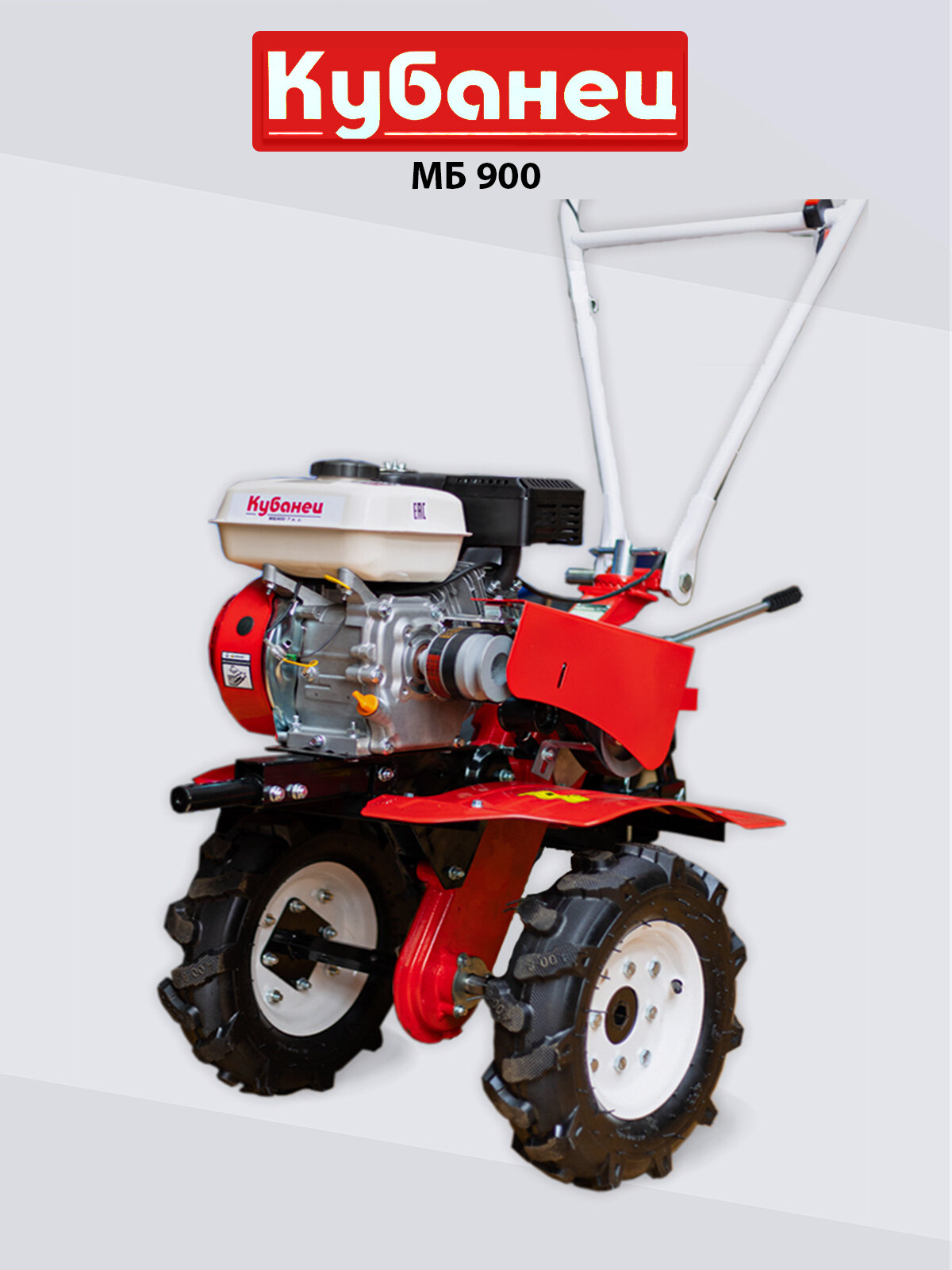 Мотоблок бензиновый двигатель КУБанец культиватор садовая техника МБ 900 с колесами 7 л. с, 2 скорости вперед, 1 назад информация: