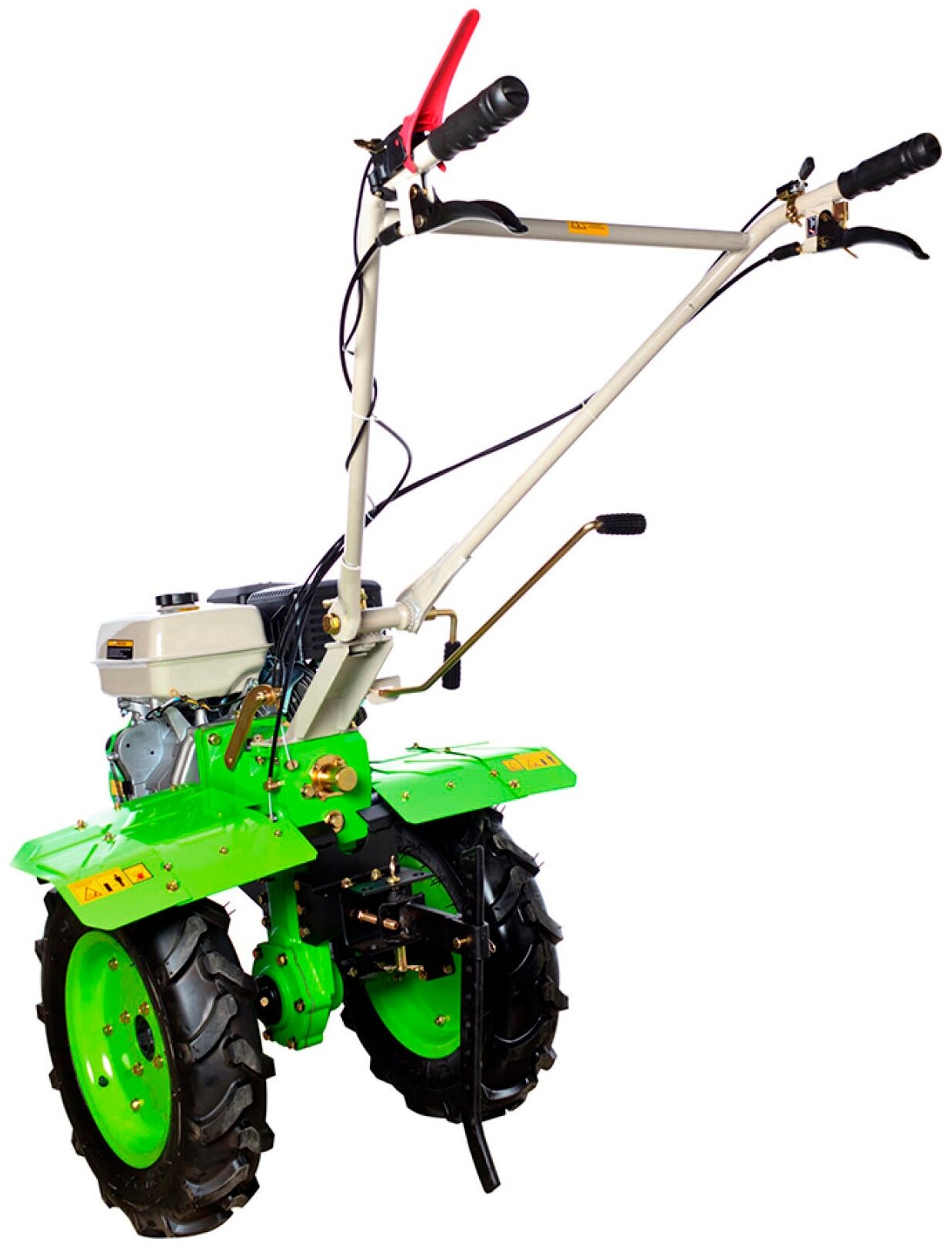 | Комплект поставки | Мотоблок; Ножи фрез с комплектом крепежа - 32 шт.; Комплект крепежа к мотоблоку - 1 шт.; Колёса - 2 шт.; Полуоси к фрезам - 2 шт.; Кронштейн передний - 2 шт.; Кронштейн задний - 1 шт.; Защитный щиток - 4 шт.; Гаечный ключ - 3 шт.; Отвёртка - 1 шт. |