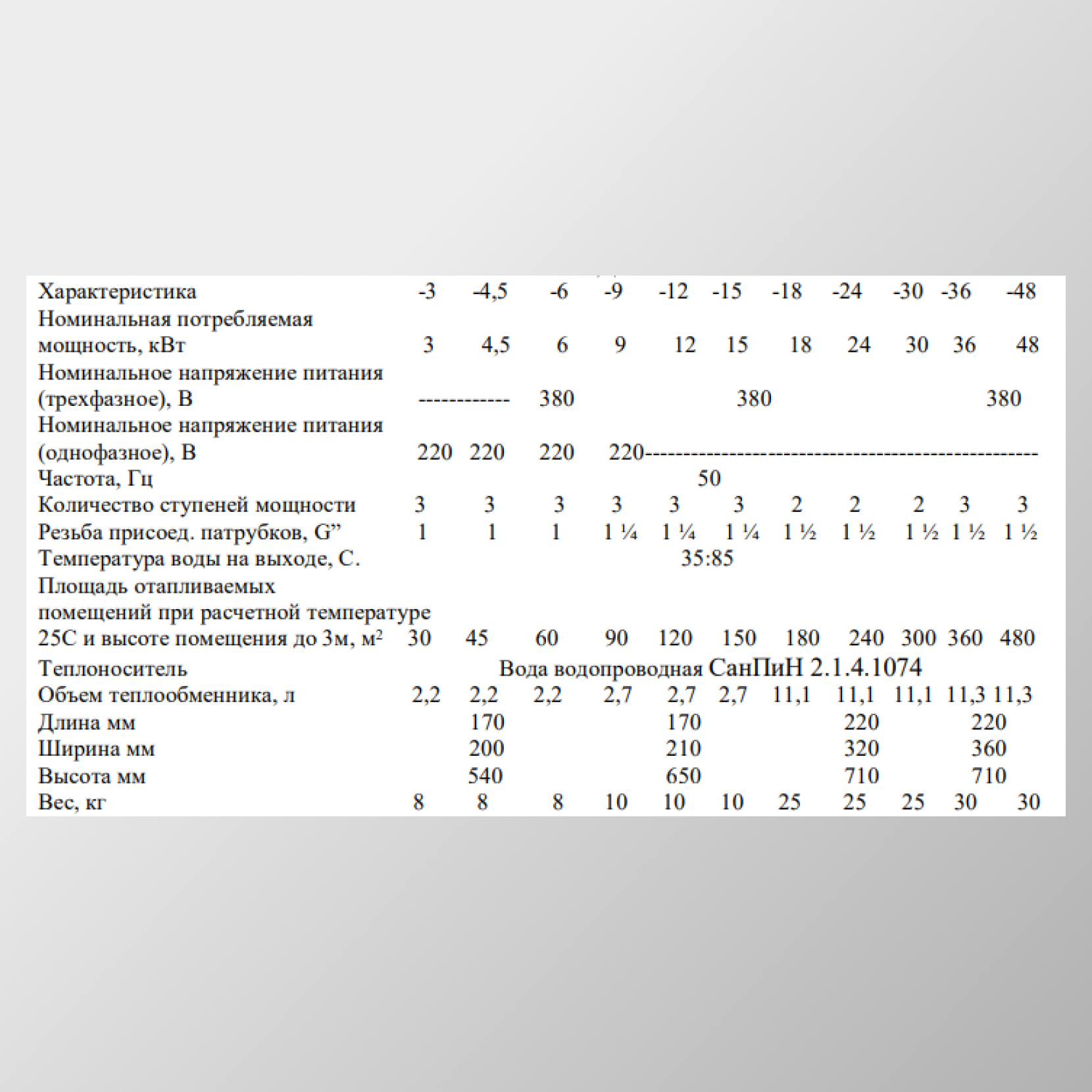 | Температура теплоносителя | 35 - 85 °С |