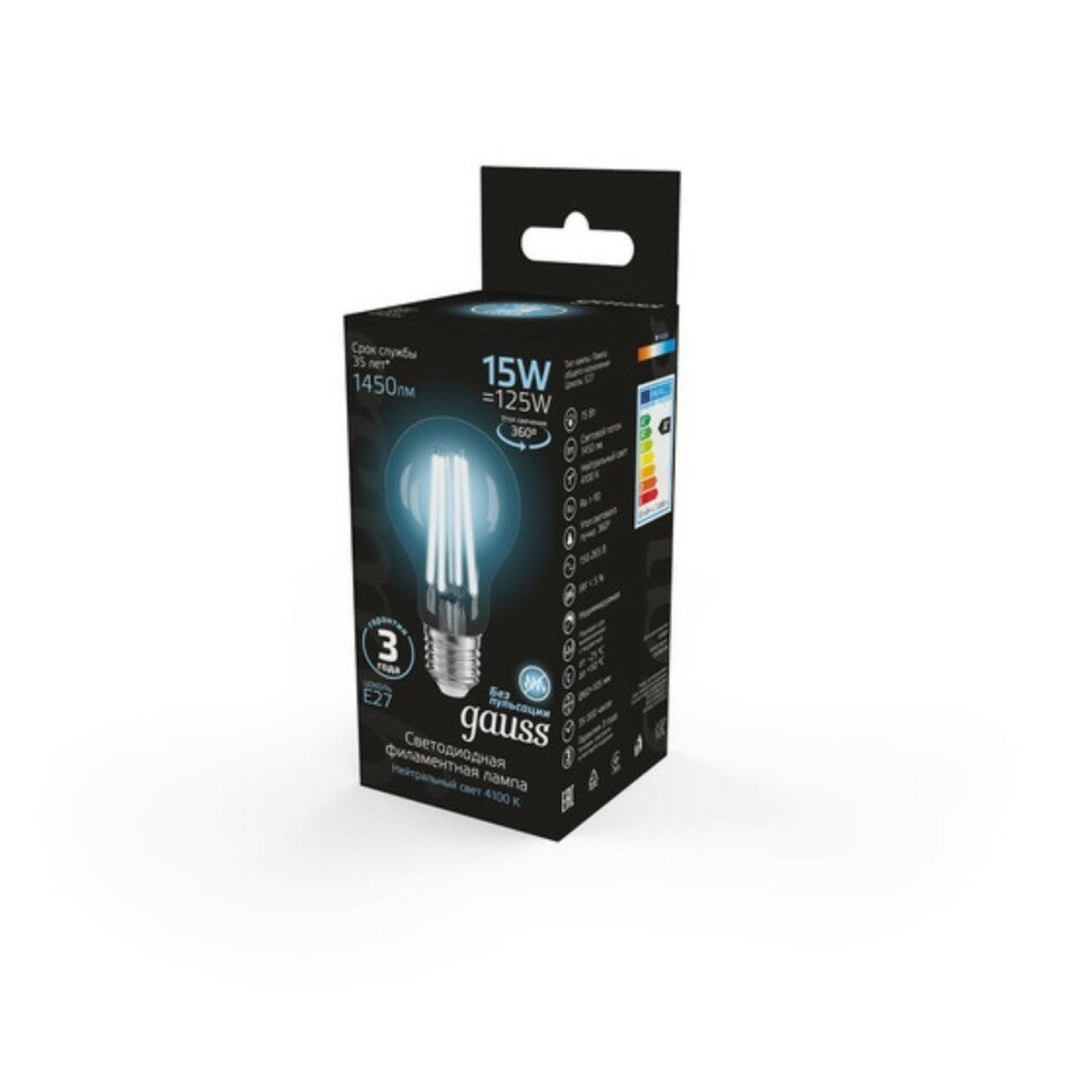 Отзывы на 102902215 Лампа Gauss Filament А60 15W 1450lm 4100К Е27 LED 1/10/40
