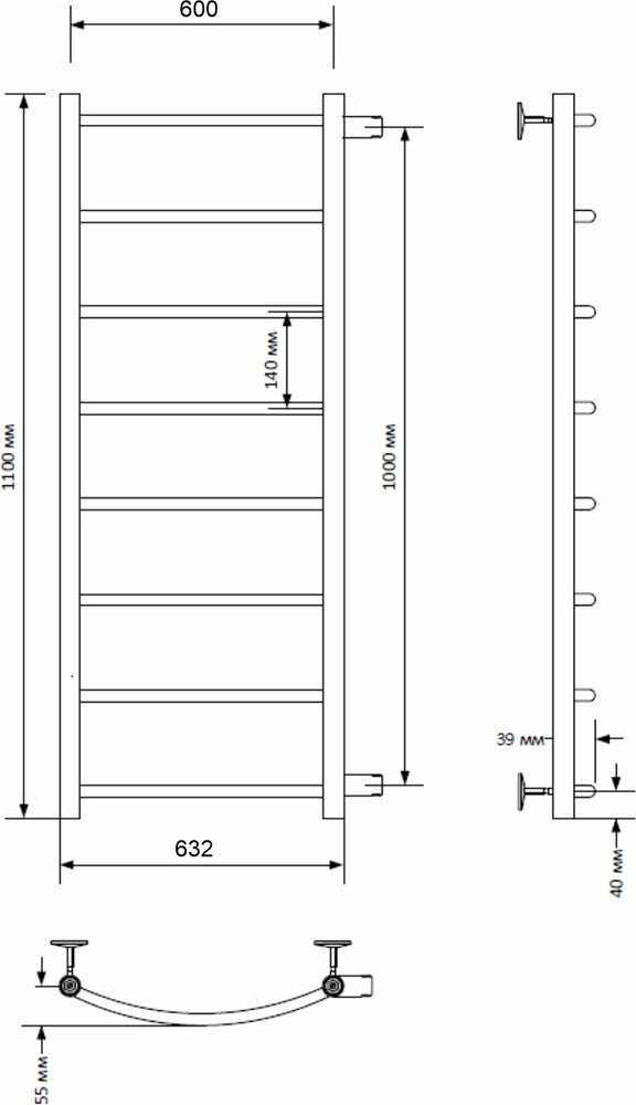 Отзывы на Полотенцесушитель водяной Indigo Arc LASW110-60-б/п-100 боковое подключение, серебристый