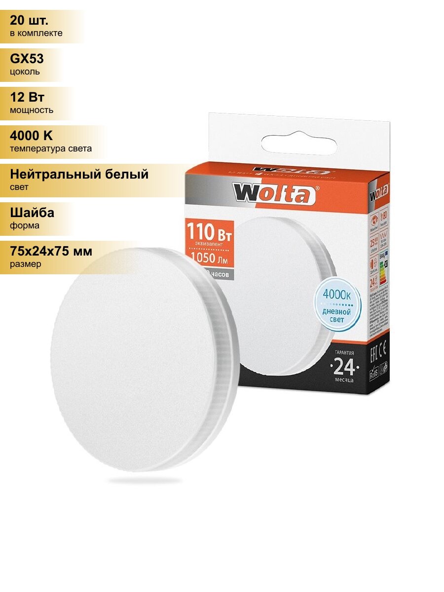 (20 шт.) Светодиодная лампочка Wolta лампа св/д GX53 12W (1050lm) 4000К 4K матов 24x75 25S75R12GX53 . Цоколь GX53 4 131 ₽