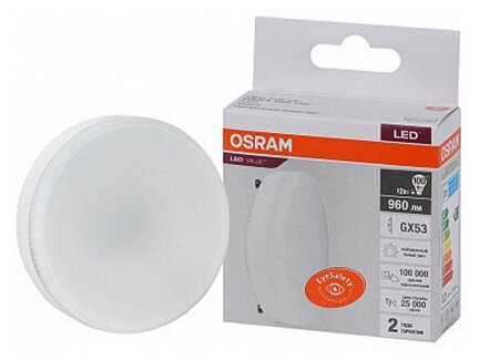 Отзывы на 10шт/уп. Лампа LED Таблетка 12Вт 220-240V GX53 960Лм 4000К Угол 110 град. D-73mm L-28mm Свет Дневной белый OSRAM, уп. 10шт