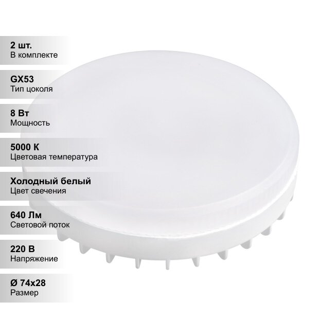 (2 шт.) Светодиодная лампочка Jazzway 8Вт 230В 5000K GX53 376 ₽