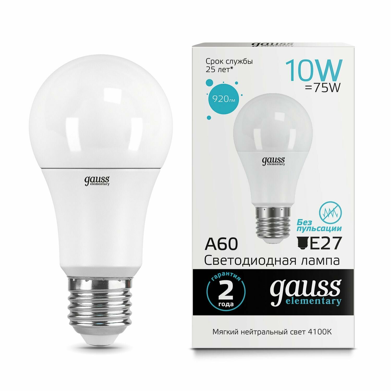 Отзывы на 10шт/уп. Лампа LED Груша 10Вт 230B A60 E27 920Лм 4100К Свет Нейтральный белый арт. 23220 Gauss, уп. 10шт