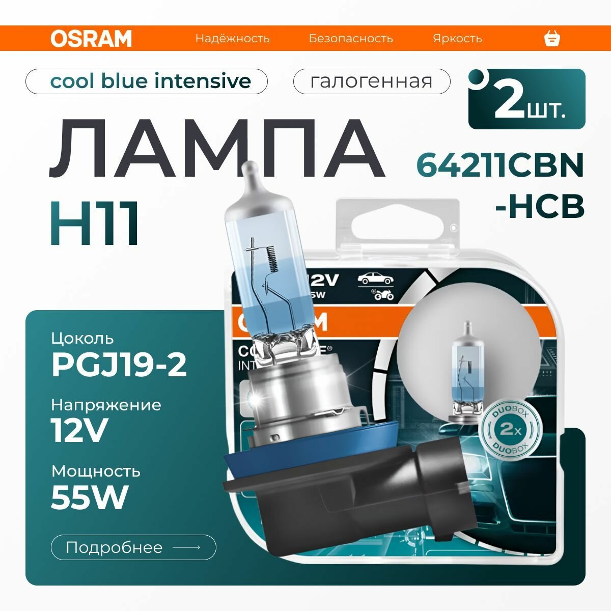 Лампа 12V H11 55W PGJ19-2 5000K OSRAM COOL BLUE INTENSE 2 шт. DUOBOX 64211CBN-HCB Osram арт. 64211CBNHCB