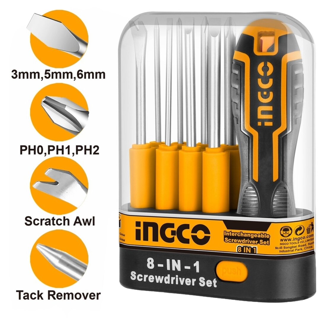 Отвертка со сменными насадками 8в1 Cr-V, INGCO INDUSTRIAL AKISD0901