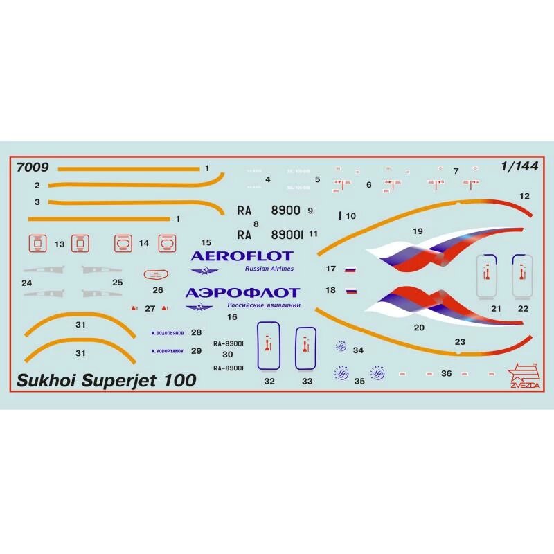 Сборная модель «Самолёт SuperJet 100», Звезда, 1:144, (7009ПН)
