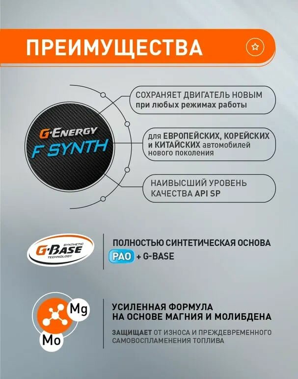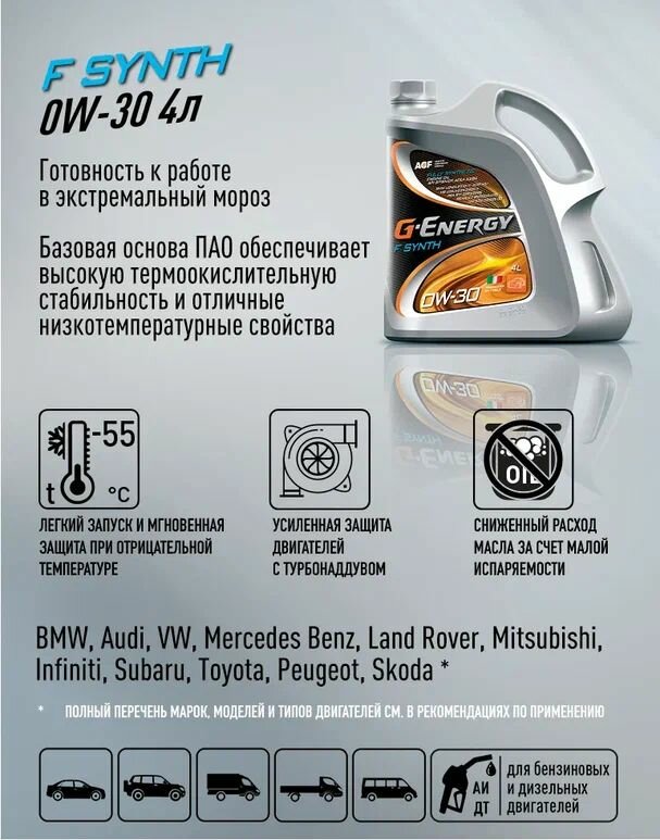 Масло моторное G-Energy F Synth 0W-30 синтетическое 4л информация: