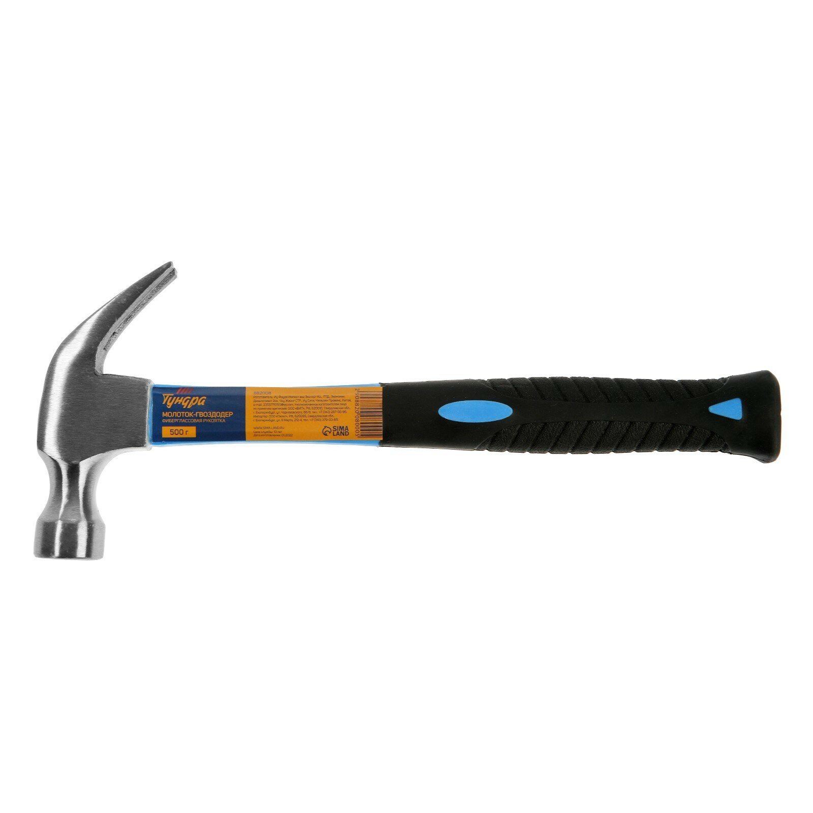 Молоток-гвоздодёр ТУНДРА 882008, фиберглас, металл, круглый, с гвоздодёром информация: