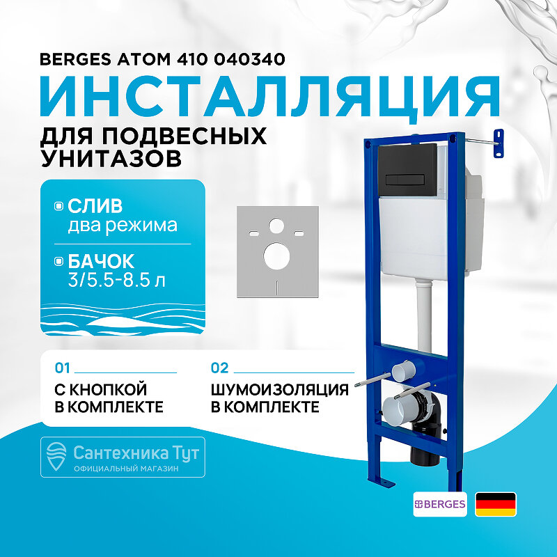 Инсталляция Berges Atom 410 040340 для унитаза с Черной клавишей смыва информация:
